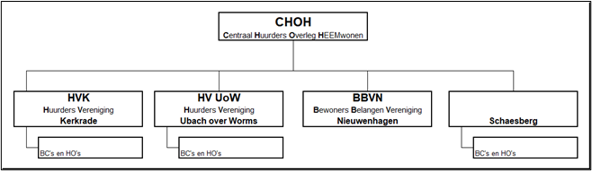Structuur CHOH (Huurders Belangen Comités volgens opgave Woonbond)